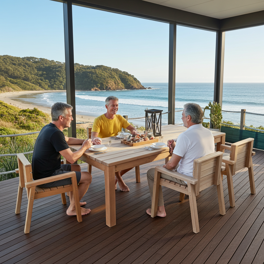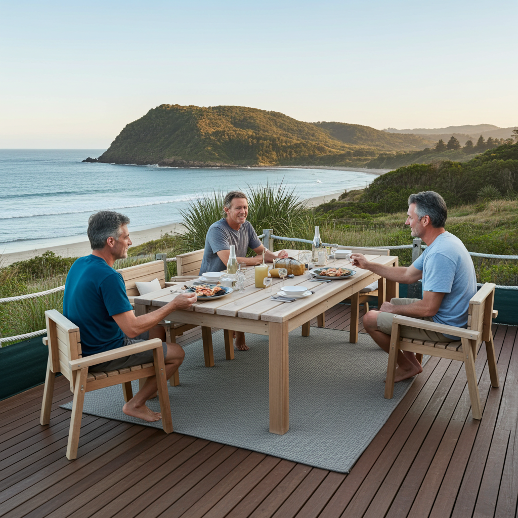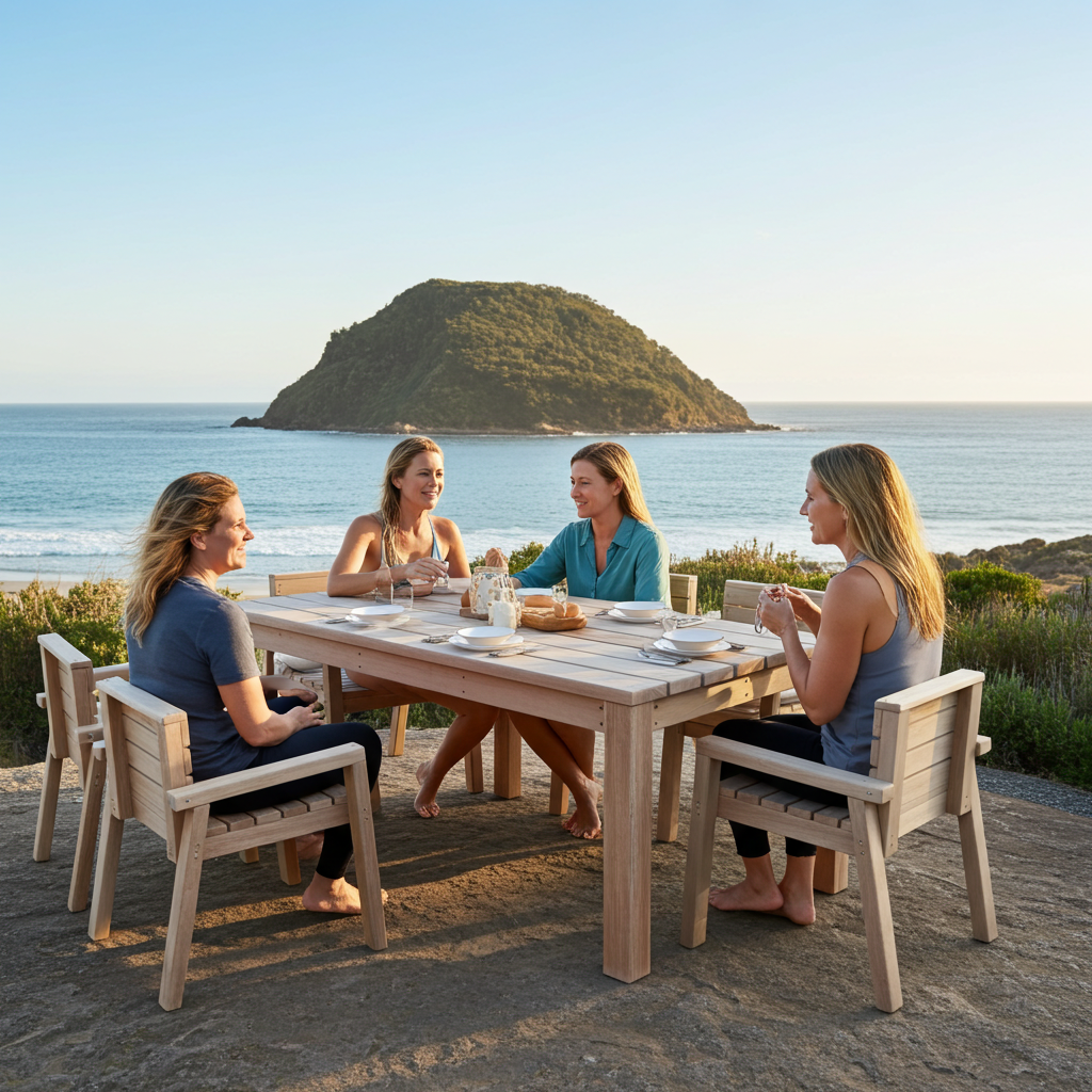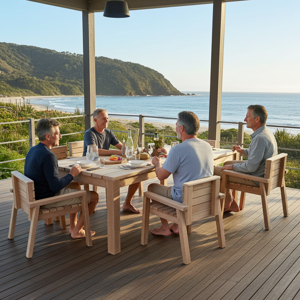 I use solid macrocarpa for both the table and chairs—warm, natural, and built to last. I supply the set naked, so you can stain or paint it to match your home, bach, or deck just the way you like.