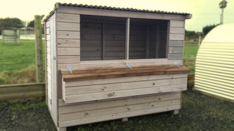 Dimensions – 2.1m long, 1.2m wide, 1.9m tall (6 boxes) for up to 10 hens.