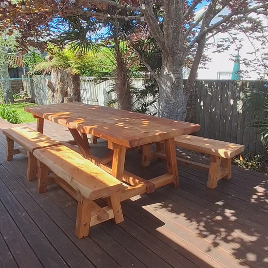 Handcrafted from solid macrocarpa—built to last, built for life.